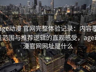 age动漫 官网完整体验记录:内容覆盖范围与推荐逻辑的直观感受,age动漫官网网址是什么
